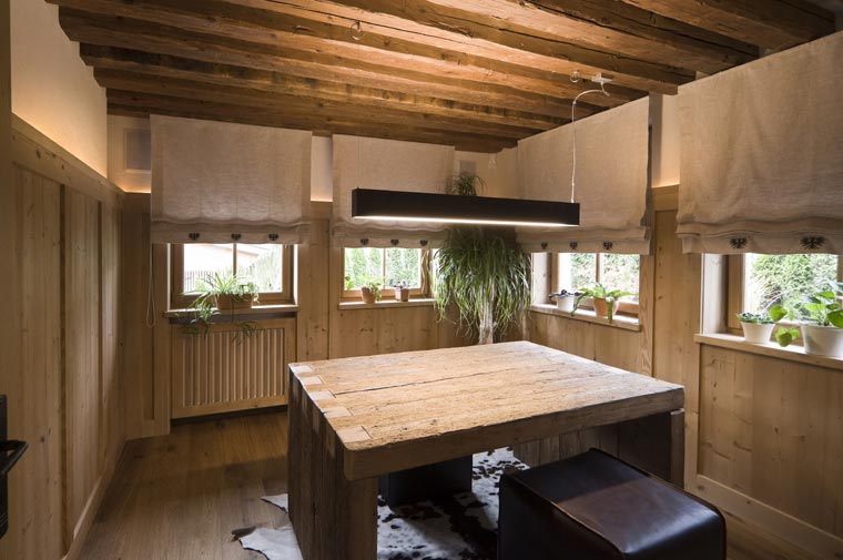 Il progetto „Abitare in Valle Aurina in Alto Adige“ è la realizzazione di un edificio residenziale in stile tradizionale tirolese, ma dotato di ogni comfort moderno. Il vecchio è stato integrato nel nuovo. Gli elementi di legno usati nella costruzione appartenevano integralmente ad una vecchia fattoria di zona. Il proprietario ama questo stile tradizionale e accogliente.